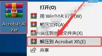1.选中【Acrobat XI】压缩包,鼠标右击选择【解压到Acrobat XI】。