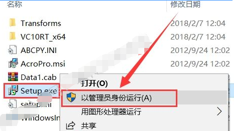 3.选中【Setup.exe】可执行文件,鼠标右击选择【以管理员身份运行】。