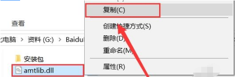 9.打开安装包解压后的【Acrobat DC】文件夹,选中【amtlib.dll】文件,鼠标右击选择【复制】。