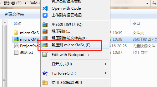 2.选中【microKMS.zip】右击解压到当前文件夹。