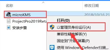 温馨提示:若打开后没有【microKMS】文件,则需要关闭你电脑杀毒软件和防火墙(Windows10系统还需关闭Defender)后再重新解压安装包后打开。