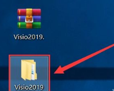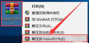 1.选中【Visio2019】压缩包,鼠标右击选择【解压到Visio2019】。