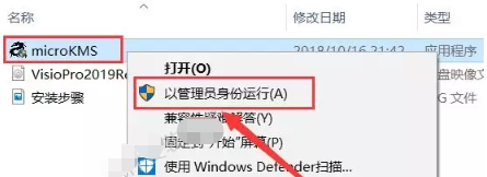 8.返回解压文件夹选中【microKMS】可执行文件,鼠标右击选择【以管理员身份运行】。