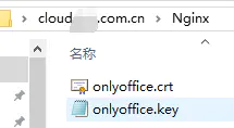 将Nginx文件夹下的.key文件和.crt文件改名为onlyoffice.key和onlyoffice.crt