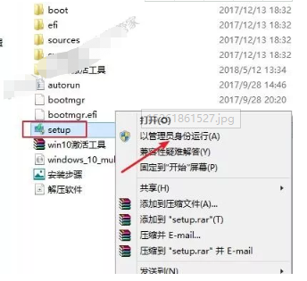 2.解压完成后,鼠标右击“setup”,选择“以管理员身份运行”。