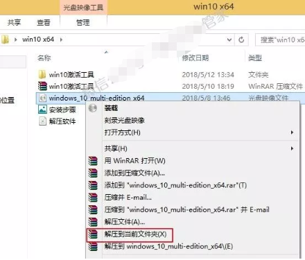 1.打开下载的文件夹,鼠标右击“windows_10_multi-edition_x64”,选择“解压到当前文件夹”。
