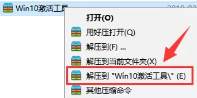 1)打开下载后的文件夹,鼠标右击【Win10激活工具】压缩包,选择【解压到Win10激活工具】。