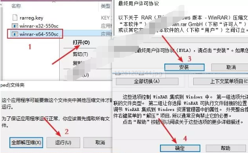 2)若你安装的是64位操作系统,右击“winrar-x64”打开运行;若你安装的是32位操作系统,右击“winrar-x32”打开运行,具体安装方法如下所示