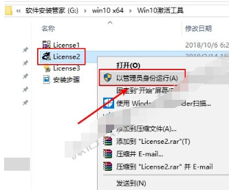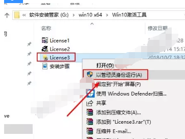 1)打开解压后的【Win10激活工具】文件夹,鼠标右击【License3】,选择【以管理员身份运行】。