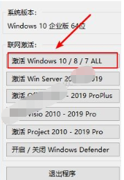 2)点击【激活 Windows 10 /8/7 ALL】,激活成功,点击【退出程序】。若激活失败,尝试方法三。
