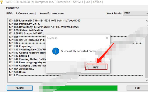 3)提示【Successfully……】证明激活成功,点击【确定】。