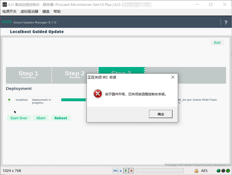 在更新到 Setp3 会自动断开IRC,等待更新完会自动重启机器,重启完毕SPP也就更新完了。此时可以看到BIOS的版本软件都会自动更新;