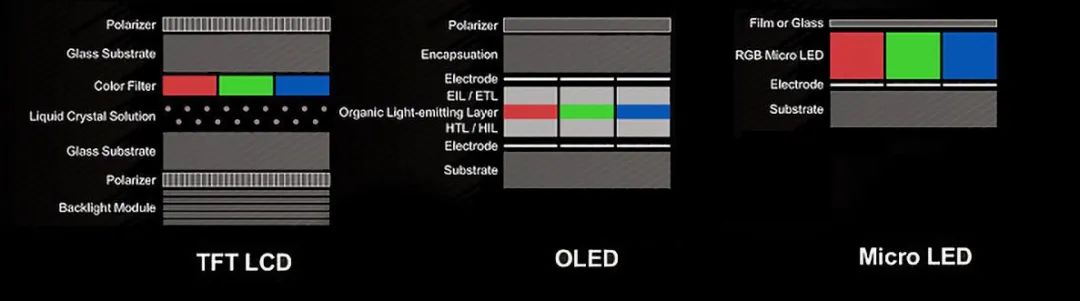首先是不需要再当别人的陪衬,microLED 自己足够小,组合起来就是显示面板,不需要再液晶板下面做 LCD 的背光。