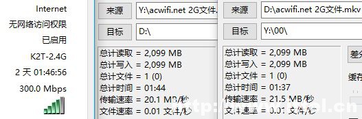 2.4G下行速度20.1MB/秒,上行速度21.5MB/秒;