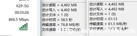 同样因为2.4G速率的差别,使得K2P的无线传输速度抛离了K2T。